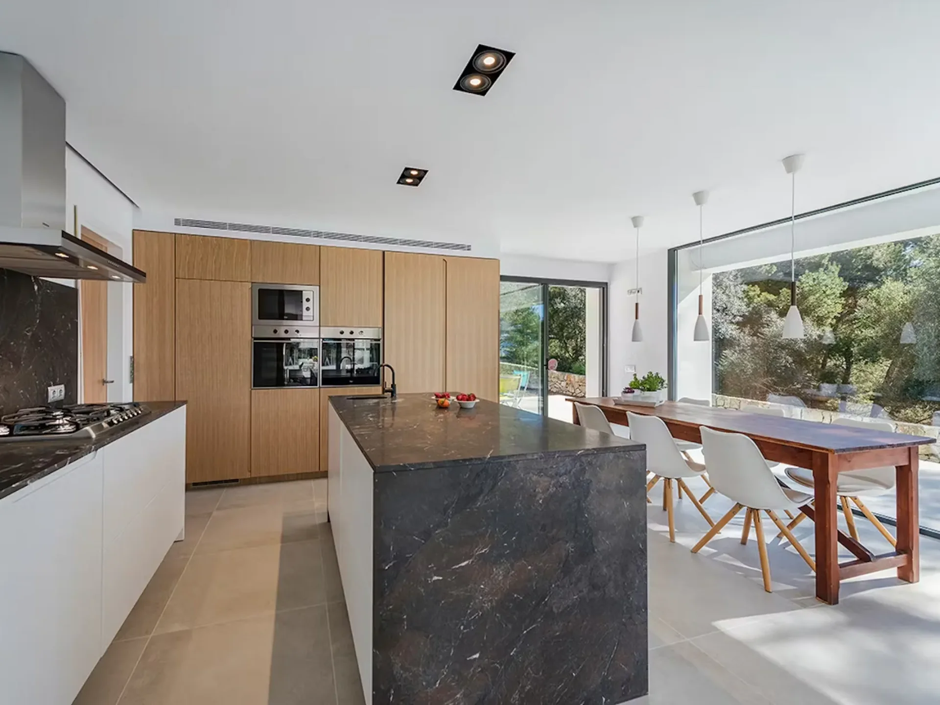 Escape to a stunning holiday retreat nestled among Mediterranean pine trees, offering breathtaking views of the forest, valley, and sea. This elegant 4-bedroom villa comfortably accommodates up to 8 guests, blending exquisite craftsmanship with modern style.