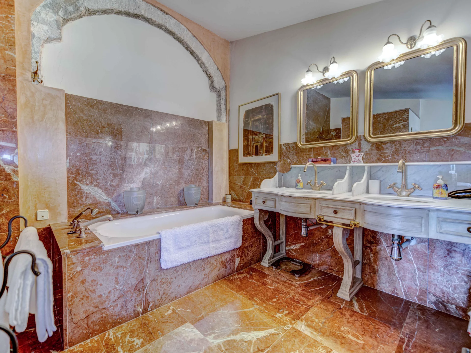 Outside, two hectares of landscaped gardens frame the solarium pool, lush orchards, and aromatic plants, providing total privacy and tranquility. Guests can enjoy cycling, hiking, horseback riding, or exploring nearby vineyards and golf courses.