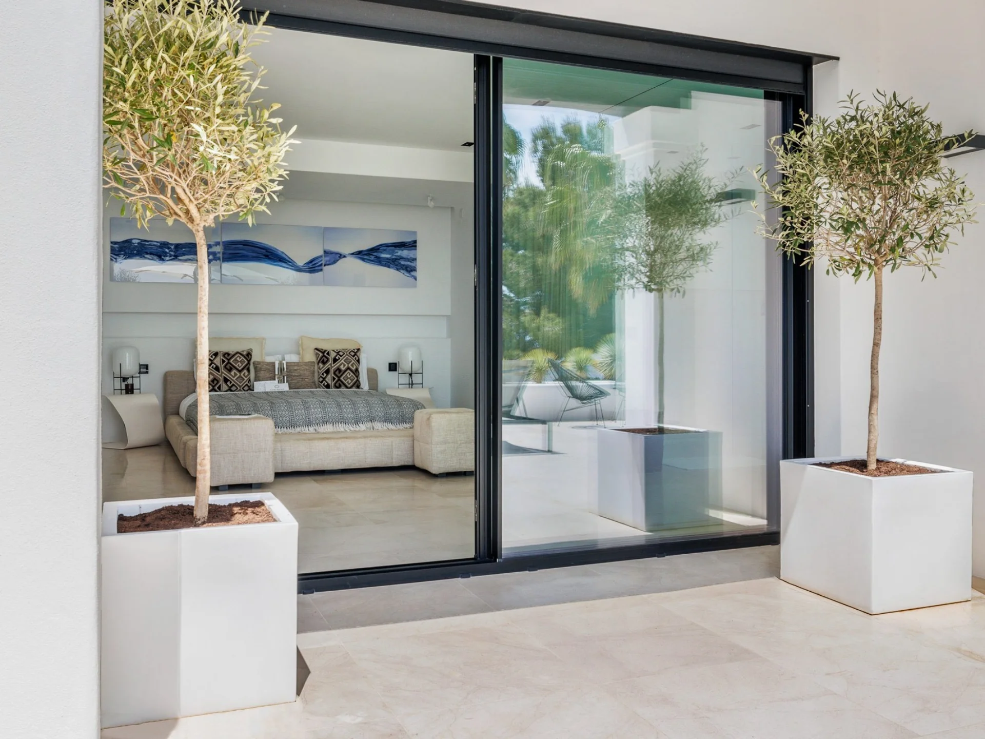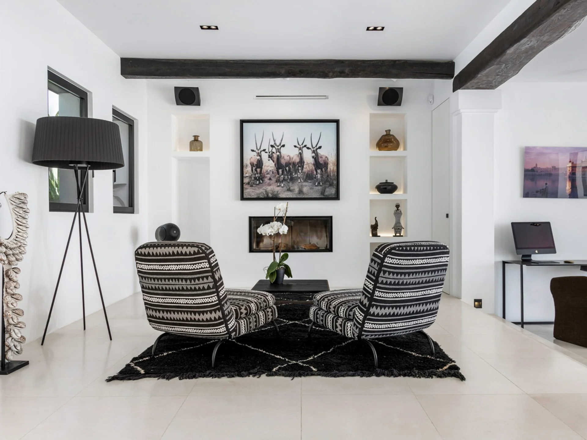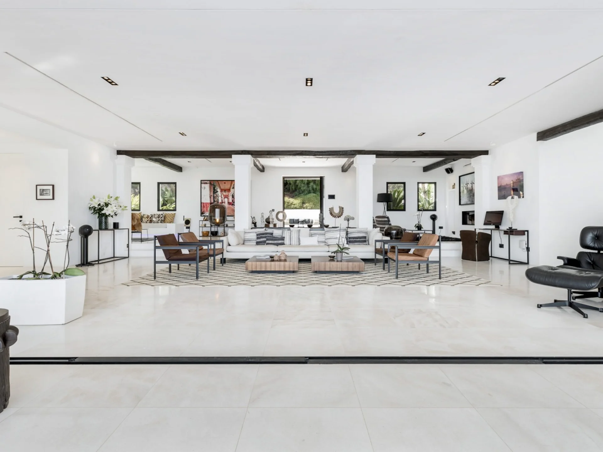 Set on an impressive 15,000 m² fully secured estate, the outdoor areas are designed to maximise privacy and enjoyment. Multiple terraces, dining areas, and lounge spaces invite guests to take in the breathtaking views at any time of day, while the heated and cooled swimming pool provides a striking focal point for outdoor living. The scale of the grounds ensures complete seclusion, enhanced by a private padel court and beautifully integrated leisure areas.