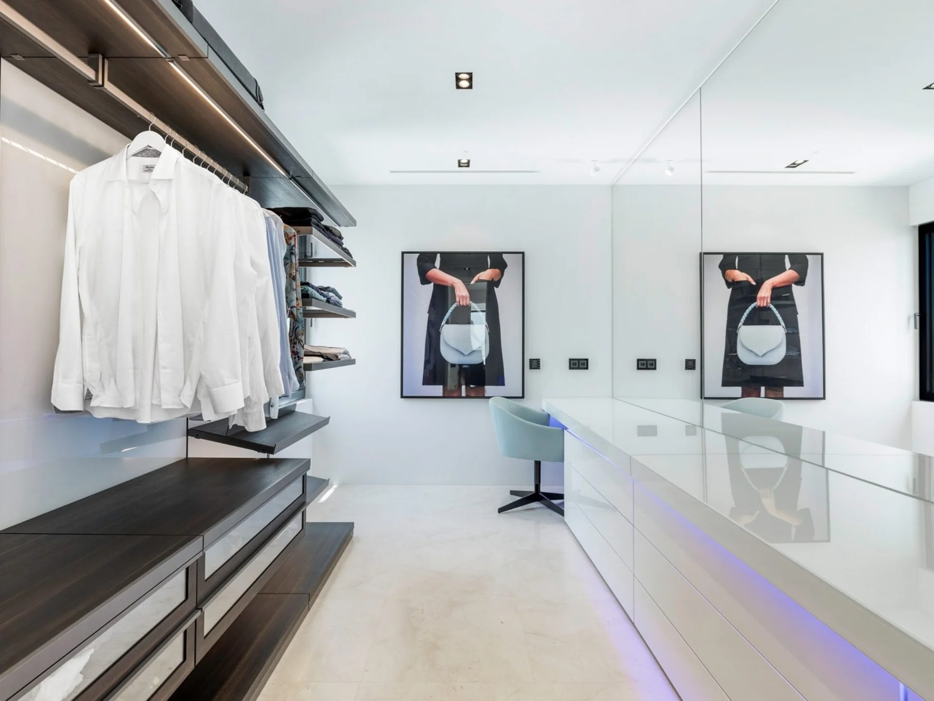 The interiors span approximately 560 m² and are characterised by generous proportions, refined finishes, and an abundance of natural light. Expansive living and dining areas flow effortlessly between indoor and outdoor spaces, creating a sense of openness and calm throughout the villa. Thoughtful design details and elegant furnishings enhance both comfort and functionality, complemented by dedicated wellness and fitness spaces designed for a balanced, elevated lifestyle.