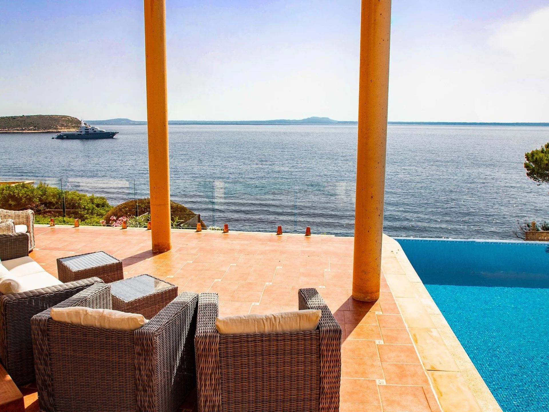 With its elevated seafront position and light-filled architecture, Villa Juan Carlos is a refined Mediterranean retreat designed for privacy, comfort, and uninterrupted sea views. Contemporary in style yet warm in atmosphere, the villa blends clean lines with generous volumes, allowing the surrounding landscape and horizon to take centre stage.