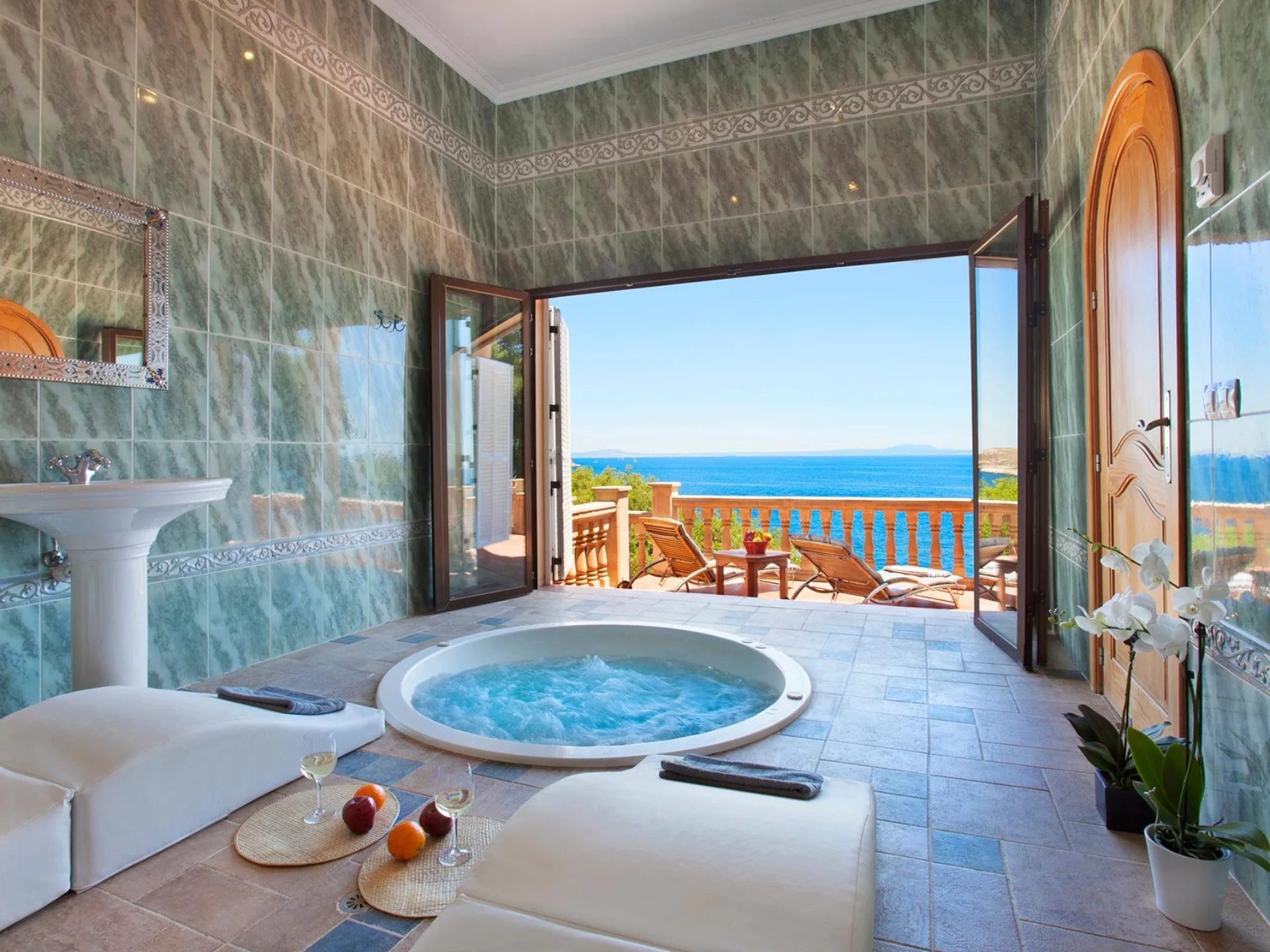 - Jacuzzi and wellness-style relaxation spaces with sea views