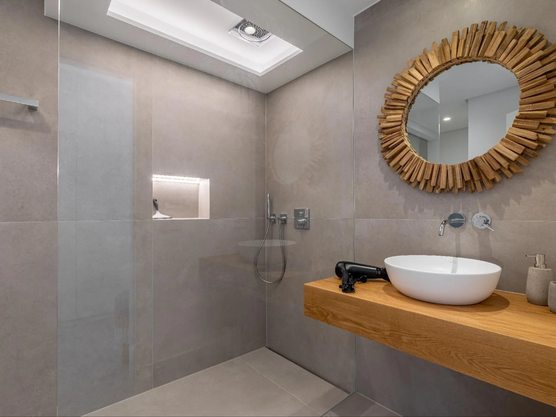 Outdoor living is where Villa Malgrat truly comes alive. The expansive terrace levels cascade down toward the sea, centred around a stunning freeform pool with a pool bar and surrounded by sun loungers, parasols, and multiple chill-out areas designed for long, lazy days under the Mallorcan sun. A secluded grotto with its own beach bar offers an intimate setting to enjoy unforgettable sunsets in complete privacy. Culinary experiences are effortlessly catered for with a fully equipped summer kitchen featuring a built-in BBQ and traditional pizza oven, complemented by elegant outdoor dining areas perfect for al fresco meals against the backdrop of the shimmering Mediterranean. Whether hosting a relaxed family lunch or an evening gathering under the stars, every meal becomes an occasion.
