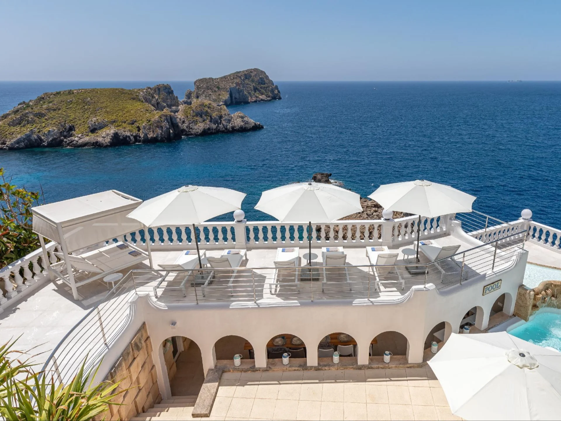 - Pool with pool bar, multiple chill-out terraces with unobstructed sea views