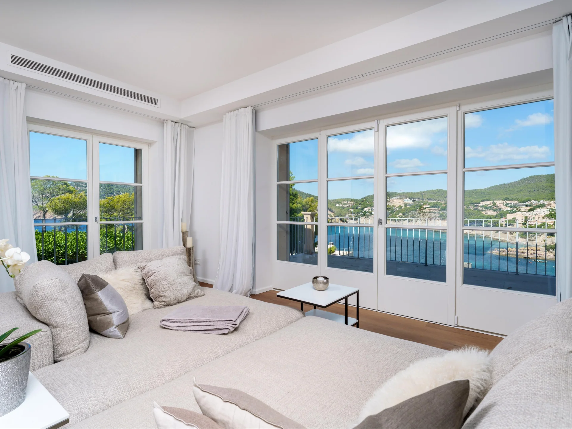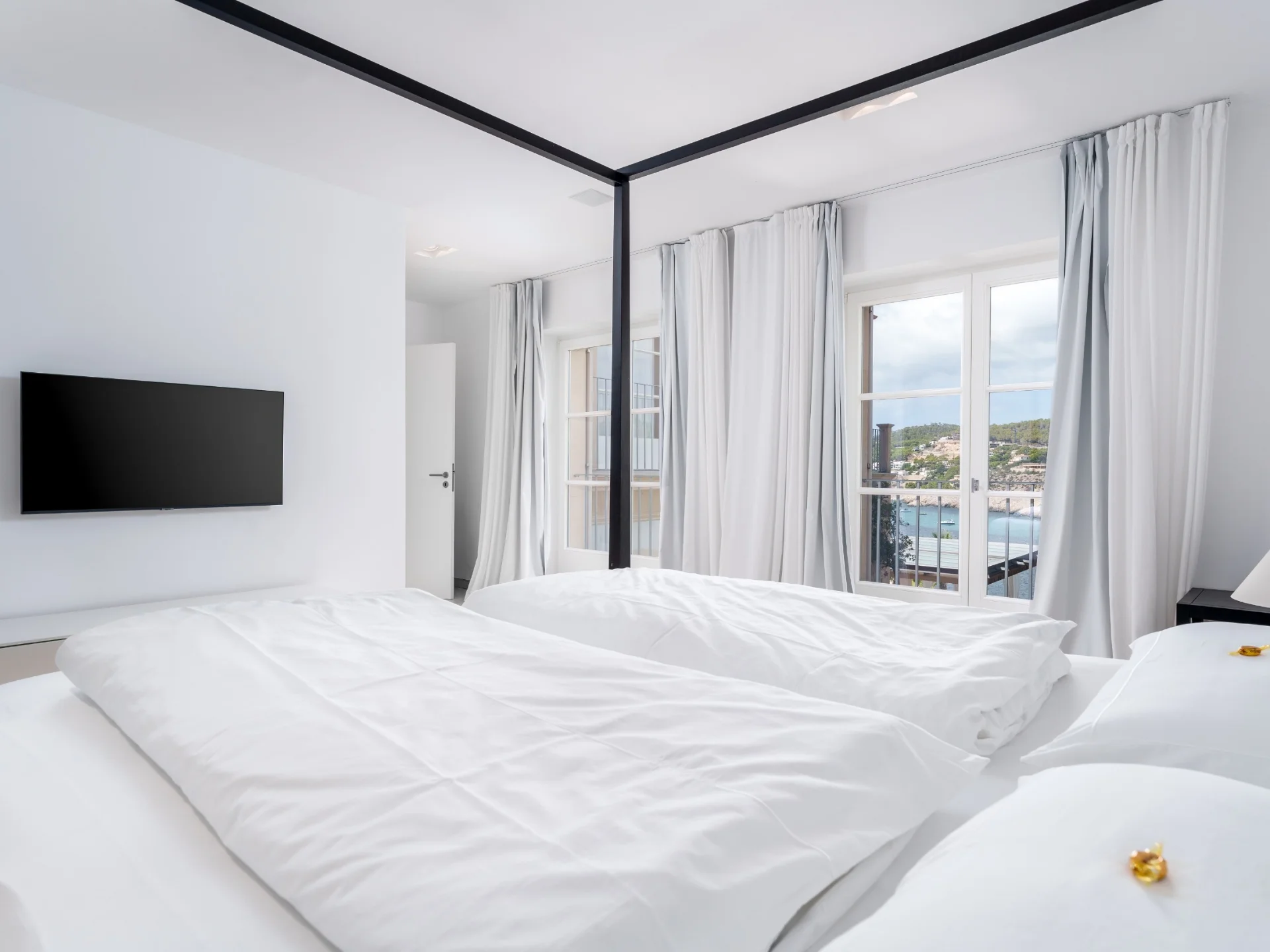- Bedrooms 1: Master suite with king bed, panoramic sea views, and private terrace