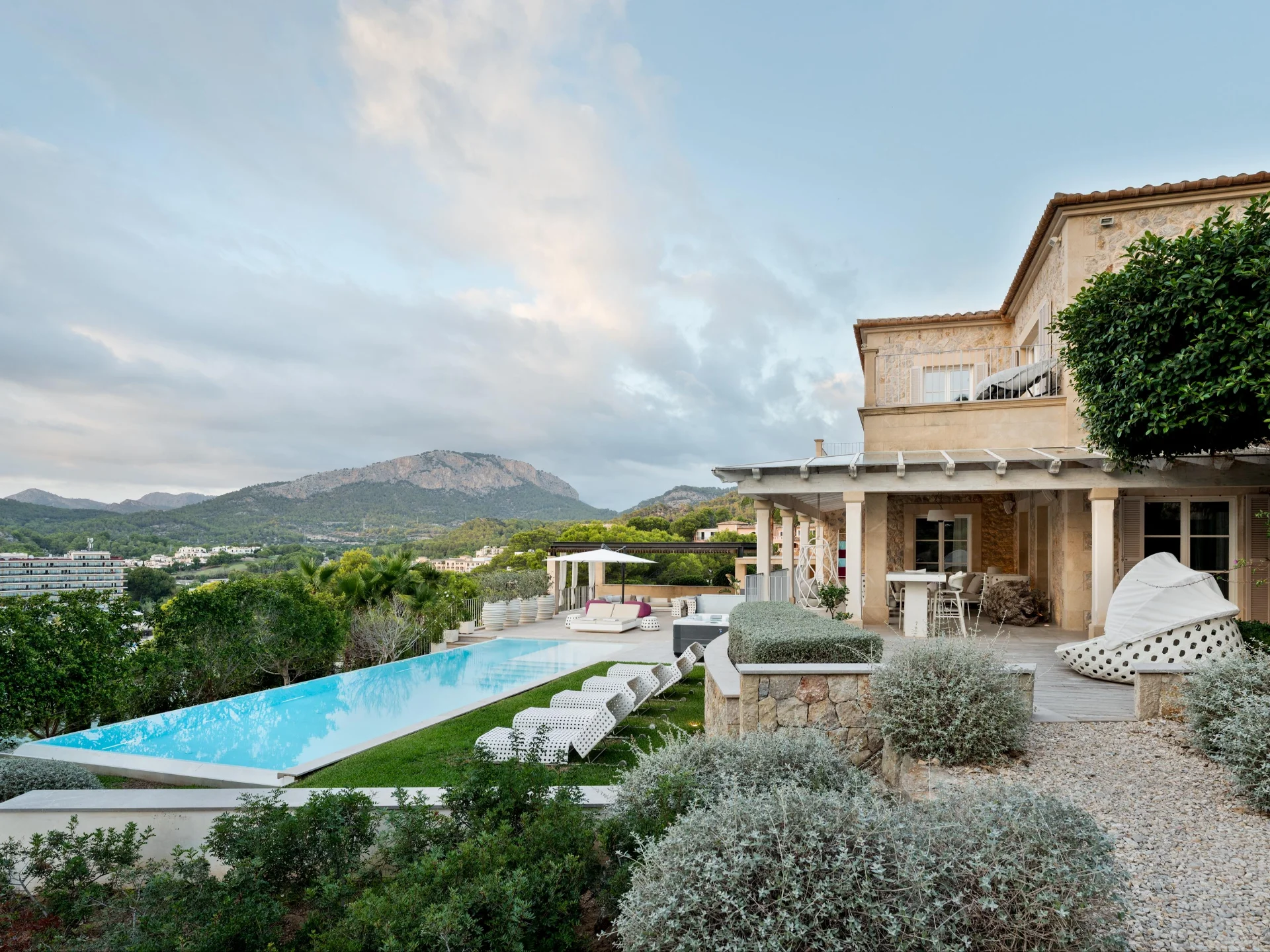 Perched dramatically on the cliffs of Andratx, Casa Olena is a striking contemporary villa that masterfully blends modern design with the natural beauty of Mallorca’s southwest coast. Designed for discerning guests seeking privacy, style, and sophistication, the property offers sweeping views of the Mediterranean and an atmosphere of refined serenity.