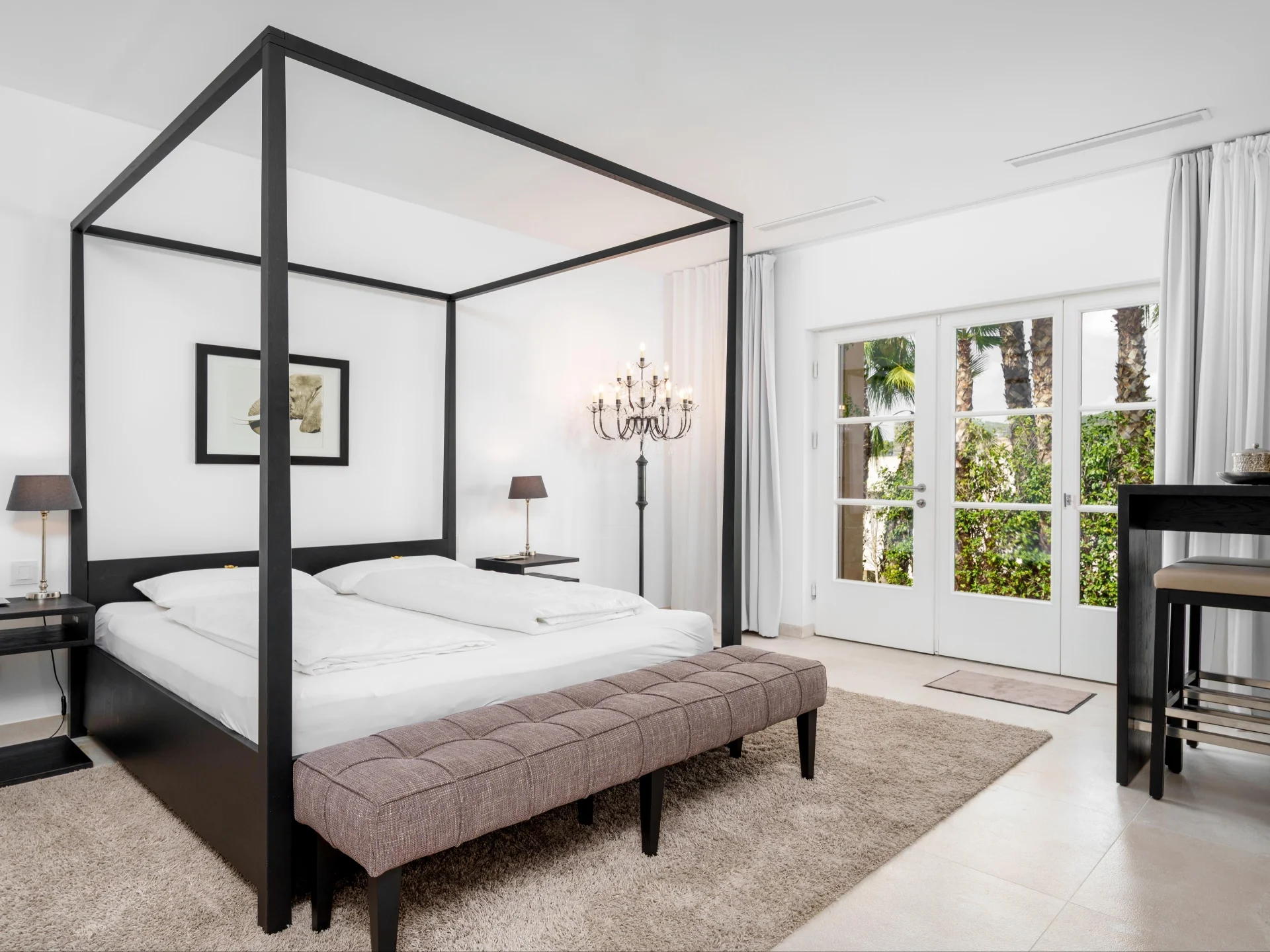 - Bedrooms 2 – 4: King beds with en-suite bathrooms and sea or garden views