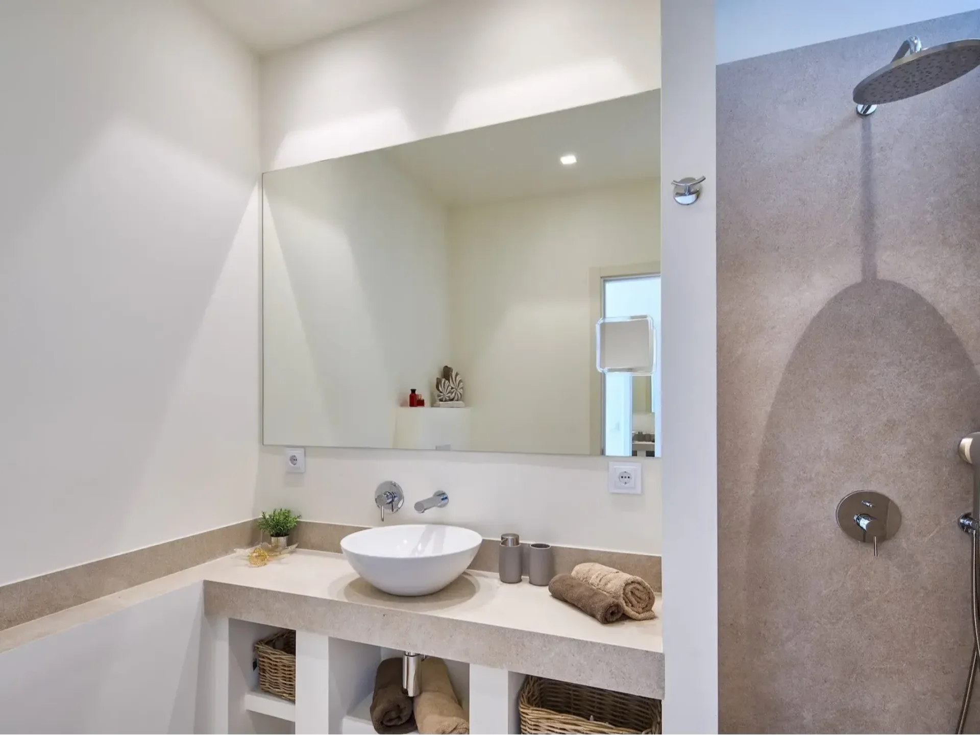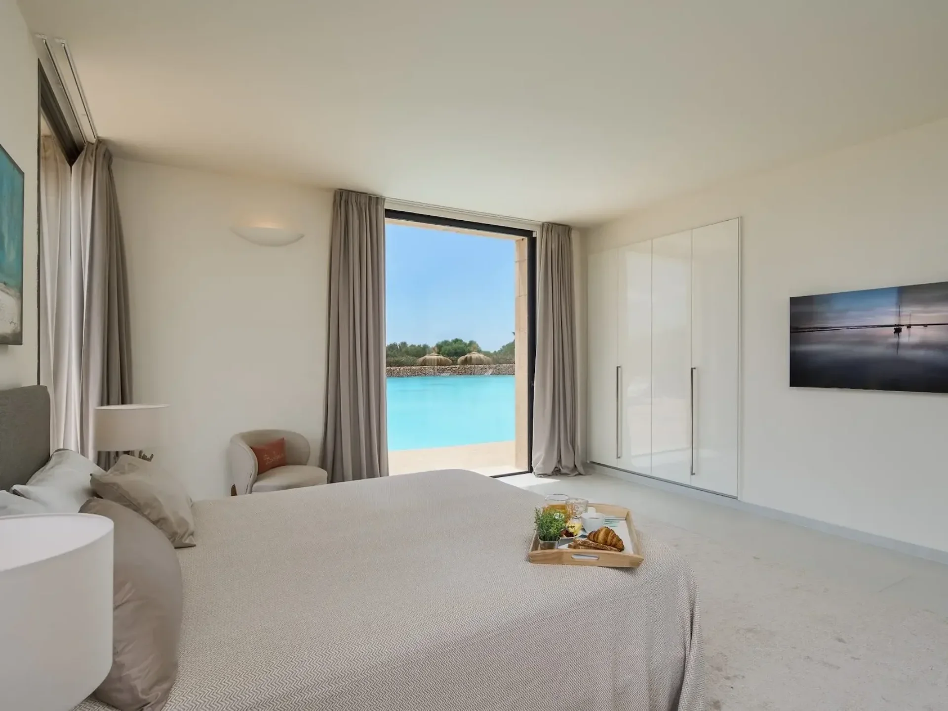 Eden Roc is a striking designer retreat where contemporary architecture and Mediterranean serenity come together in perfect harmony. A beautiful oleander-lined driveway leads to the villa’s elegant entrance and open-plan living area, where chic interiors, a state-of-the-art kitchen with wine fridge, and sweeping views of the 300 m² pool create an atmosphere of effortless sophistication — your own private, beach-style paradise.